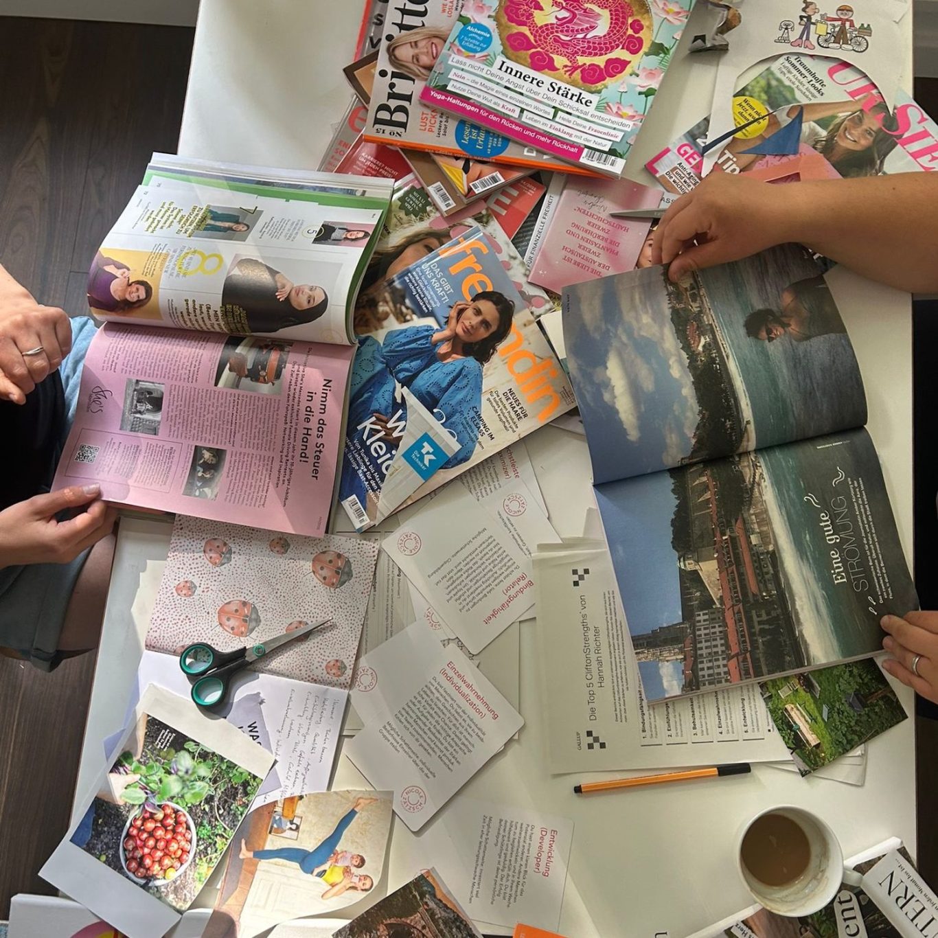 Und dann wird’s kreativ: Mit Bildern, Farben und Worten gestaltest Du Deine ganz eigene Stärken-Collage. Ein Kunstwerk, das Dich jeden Tag daran erinnert, was in Dir steckt.